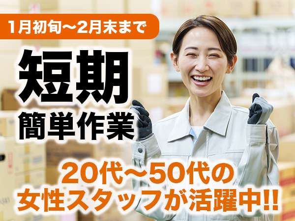 座り作業もあり!1月初旬から2月末までの短期バイト!平日週3日~OKだから家事や育児との両立も可能!